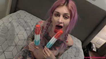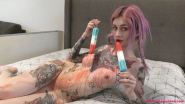 View porn photos, vids, and clips of sexy tattoed gamer suicide girl Flame Jade (Avrora) giving deepthroat blowjobs to huge popsicles and getting her pussy fucked with big hard cocks and big pink popsicle dildo!